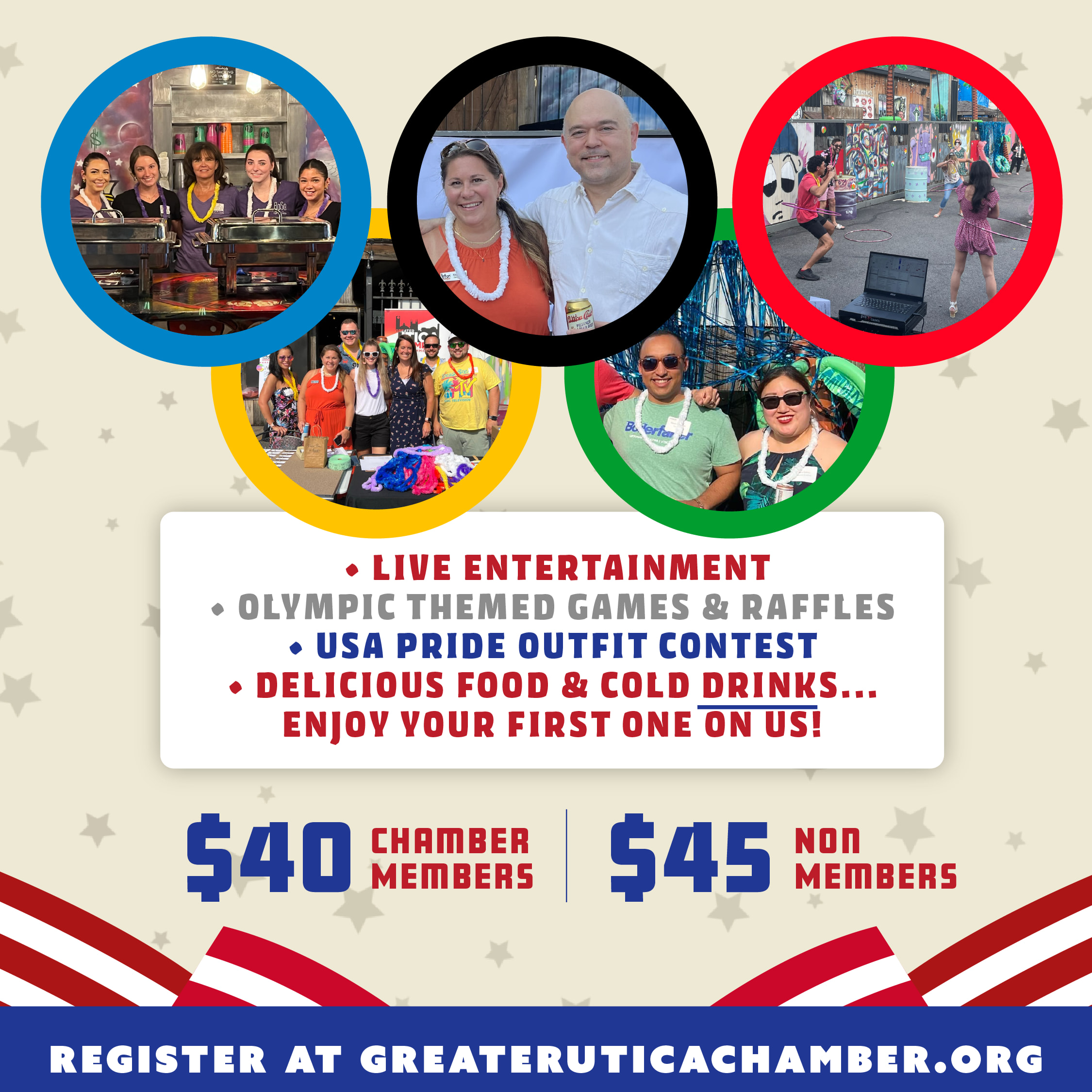 👕 Dress Code: Wear your best red, white, and blue attire to show your spirit and celebrate in style!
