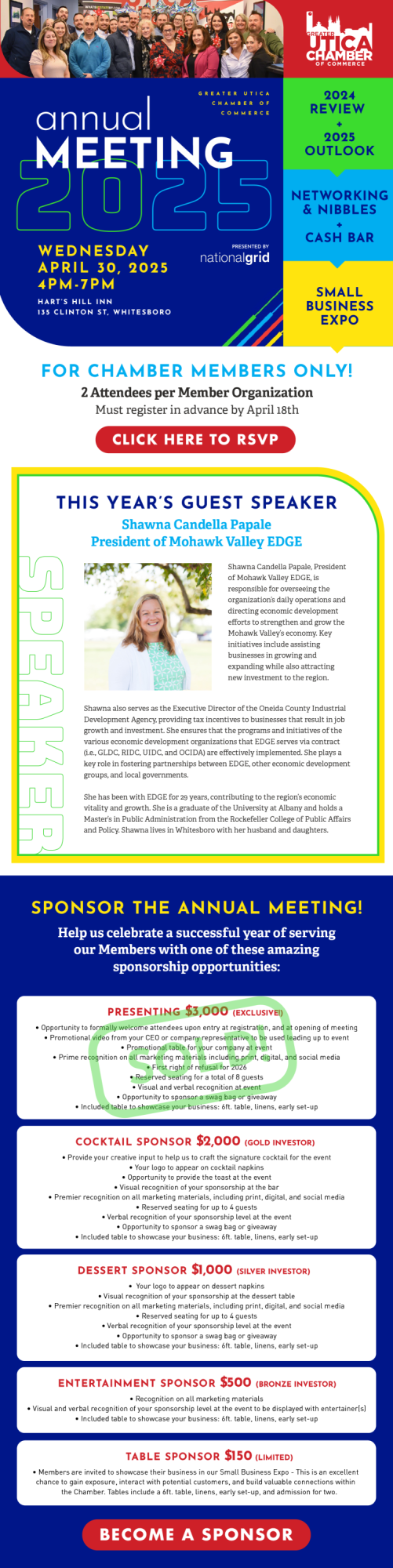 Registration opens soon, and sponsorships are available NOW! Also available are vendor tables for the Expo! Check out the opportunities and then give us a call or email info@greateruticachamber.org.